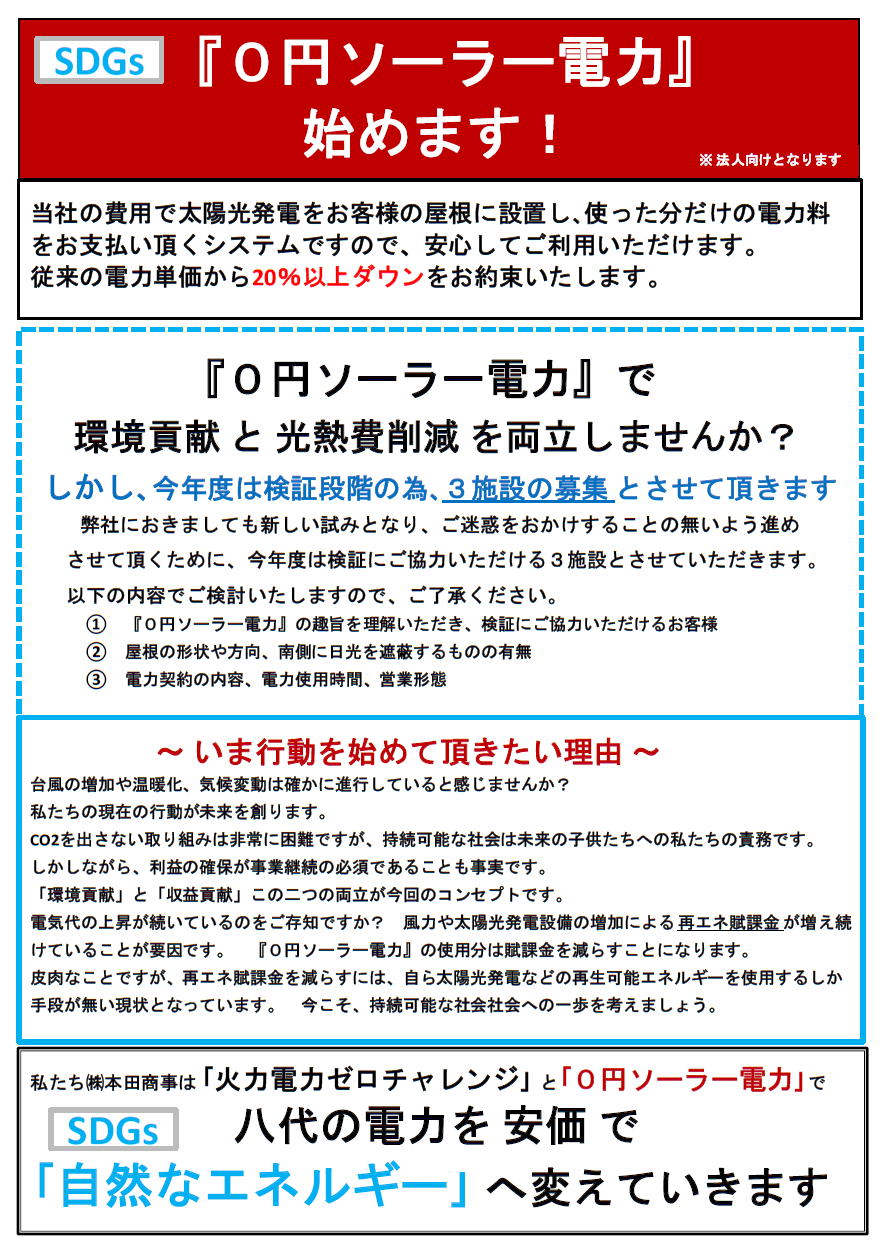 実利あるSDGs『火力発電ゼロチャレンジ』に取組みませんか?